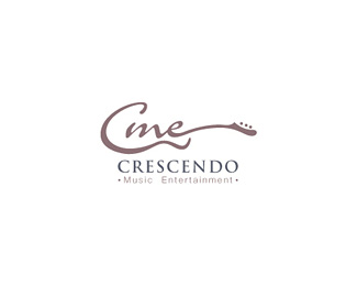 CRESCENDO搖滾樂隊標志設計,使用英文字母“CME”的筆劃走向繪制了一個抽象的吉它圖形。