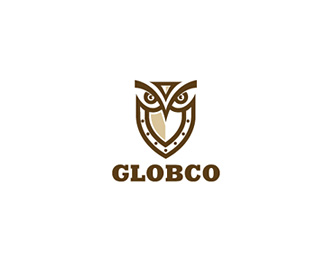 GLOBCO安全服務(wù)公司標(biāo)志,該標(biāo)志的主識別圖形是將貓頭鷹和盾牌的圖像合并成的。
