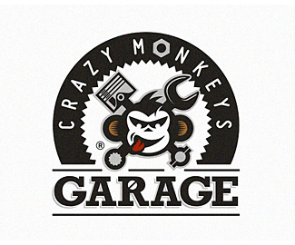 國外的一個車庫標(biāo)志設(shè)計(jì)欣賞,標(biāo)志的主角是一只瘋狂的猴子。