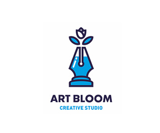 工作室logo設(shè)計(jì)使用鋼筆和花組合,充滿神秘的藍(lán)色體現(xiàn)了創(chuàng)意感。