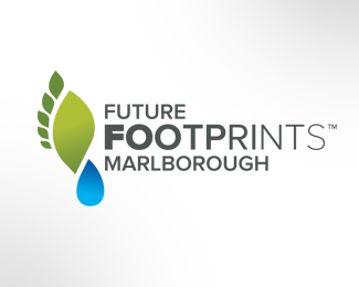 Future Footprints未來腳印抽象標志創(chuàng)意設計,該標志融入葉子和水滴的元素組合成腳印的圖形,整體以藍色和綠色作為主識別色,可以應用于未來科技或生態(tài)相關的創(chuàng)意標志設計。