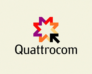 Quattrocom創(chuàng)意幾何箭頭標(biāo)志設(shè)計(jì)欣賞,融入星形和箭頭的標(biāo)志,整體使用豐富的色彩組合。