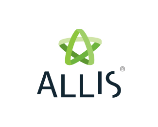 Allis星形編織帶創(chuàng)意標(biāo)志設(shè)計(jì),使用編織帶連接成一個星形的圖形,以綠色作為主識別色。