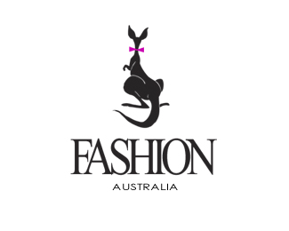澳大利亞時裝標志創(chuàng)意設計,以澳大利亞的標志性動物袋鼠作為主創(chuàng)意圖形,融入領結元素代表服飾、時裝,以紫色作為主識別色。