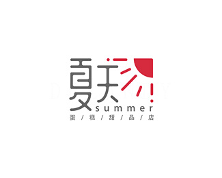夏天蛋糕甜品店標(biāo)志字體設(shè)計(jì),融入太陽(yáng)的元素,文字筆劃的線條精細(xì)適中圓潤(rùn)。