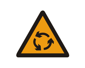 有的環(huán)形交叉路口,由于受線形限制或障礙物阻擋,環(huán)形交叉標志設(shè)在面對來車的路口的正面。